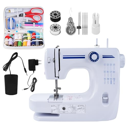 M MUNCASO Mini-symaskin för nybörjare, 12-stifts elektronisk symaskin, multifunktionell symaskin för barn, dubbel hastighet med EU-kontakt