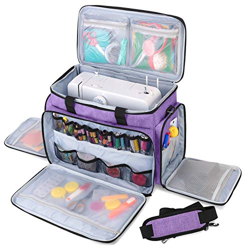 Luxja Symaskinsväska, bärväska för symaskin med avtagbar stoppning, transportväska för symaskin och tillbehör (lämplig för de flesta standardsymaskiner), lila