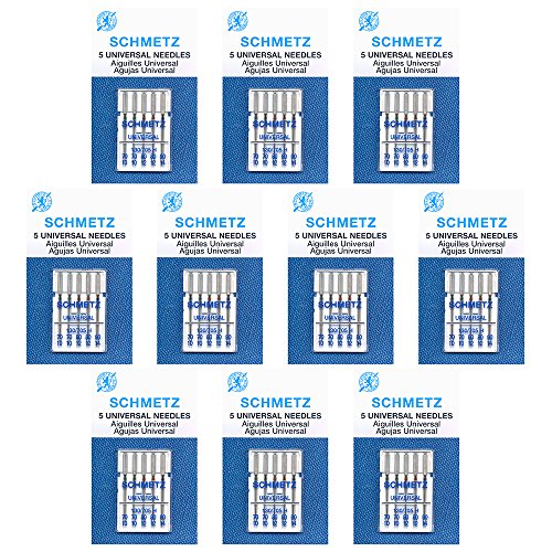 50 Schmetz universella symaskinsnålar – blandade storlekar – låda med 10 kort