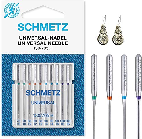 Schmetz 10 st universella symaskinsnålar (standard), olika storlekar 70/10, 80/12, 90/14 och 100/16 blandade 70-100 + 2 trådar