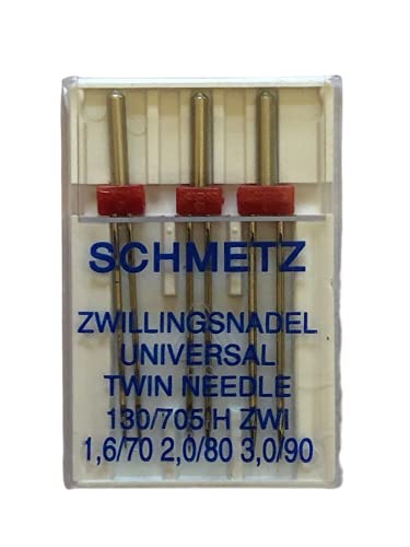 Schmetz dubbla symaskinsnålar - Sortiment 75(11)-90(14) Universalnål för parallellsömnad Kompatibel med alla inhemska symaskiner 3 stycken