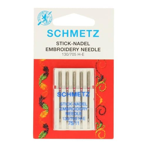 SCHMETZ Inhemska symaskinsnålar |5 broderinålar | 130/705 H-E | nålstorlek: 75/11 | för alla konventionella hushållssymaskiner och hushållsbroderimaskiner