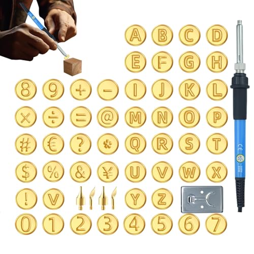 Brännande bokstäver stämplar, vedeldade bokstäver - träalfabetet träalfabetet 56 st bränningskit - ergonomiska verktyg för heta stämplar, symboler, stru