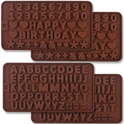 Newk bokstäver och siffror choklad silikonformer, 4 paket silikonformar för födelsedagstårta dekorationer symboler