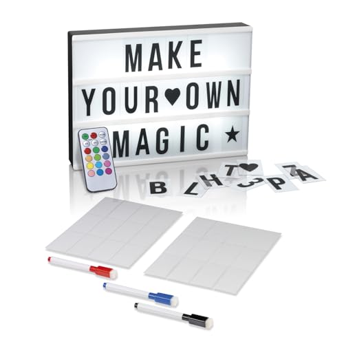 EASYmaxx LED Lightbox Set med färgförändring och Timerfunktion | Omfattar 173 utbytbara bokstäver och symboler | Olika färg ändra lägen | Batteridriven och USB-port [A4 Format]