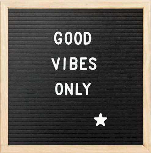 Bokstavstavla i grå filt 25 x 25 cm – 317 utbytbara bokstäver, symboler och emojis – Dekorativ filtbräda för hem, kontor, babyshower och evenemang
