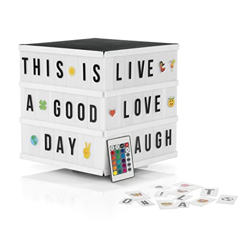 EASYmaxx LED-ljusbox Light Box – för individuella textbudskap | Megaset med 150 färgglada emojis och 173 utbytbara bokstäver, siffror och symboler | med timerfunktion [A5]