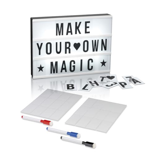 EASYmaxx LED Lightbox Set | Omfattar 173 utbytbara bokstäver och symboler | Olika färg ändra lägen | Batteridriven och USB-port [A4 Format]