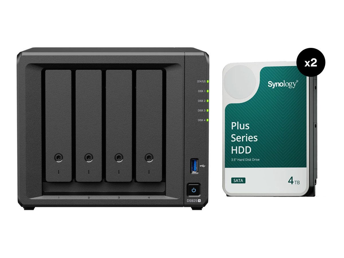 Synology DS725+ 2-bay-diskstation NAS (AMD Ryzen 4 trådar R1600 Dual-Core 4 GB ram 2 x RJ-45 1 GbE LAN-port), 8 TB paket med 2 X HAT3300-4T