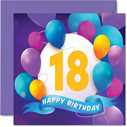 18:e födelsedagskort för män kvinnor – ballongfest – grattis på födelsedagskort för 18 år gammal man kvinna bror syster son dotter barnbarn kusin, 145 mm x 145 mm födelsedag gratulationskort present