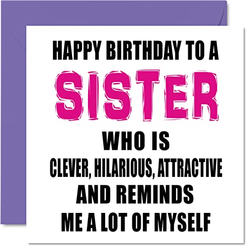 Roliga födelsedagskort till syster – smart, rolig, snygg syster – skämt grattis på födelsedagskort från bror, 145 mm syskon gratulationskort present