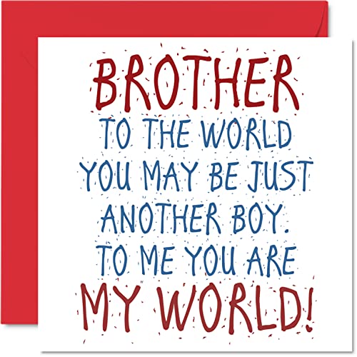 Härliga födelsedagskort till bror. Brother You Are My World – grattis på födelsedagskort från syskon eller syster, bror födelsedagspresenter, 145 mm x 145 mm bror födelsedagskort, gratulationskort present till män och pojkar