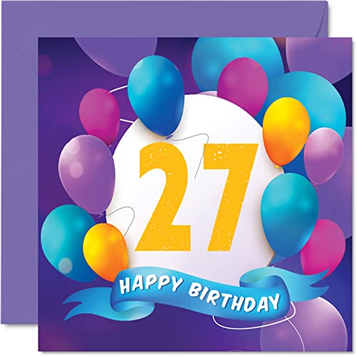 27-års födelsedagskort för män och kvinnor – ballongfest – grattis på födelsedagen-kort för 27-årig man kvinna bror syster son dotter moster farbror vän kusin, 145 mm x 145 mm födelsedag gratulationskort present