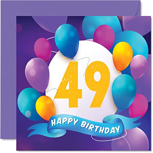 49-års födelsedagskort för män och kvinnor – ballongfest – grattis på födelsedagen-kort för 49-årig man kvinna bror syster mamma pappa moster farbror bästa vän kusin, 145 mm x 145 mm födelsedag gratulationskort present