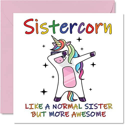 Födelsedagskort till syster – systercorn – födelsedagskort från bror eller styvsyster, glad syster, enhörningskort present, 145 mm säsongssyskon roliga gratulationskort gåvor