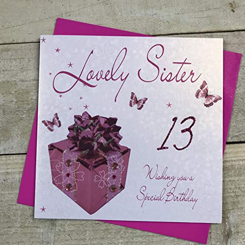 vita bomullskort rosa present, underbar syster 13 Wishing You A Special Handgjord 13:e födelsedagskort, vit, WB190-13