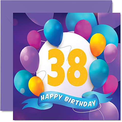 38-års födelsedagskort för män och kvinnor – ballongfest – grattis på födelsedagen-kort för 38 år gammal man kvinna bror syster mamma pappa moster farbror bästa vän kusin, 145 mm x 145 mm födelsedag gratulationskort present