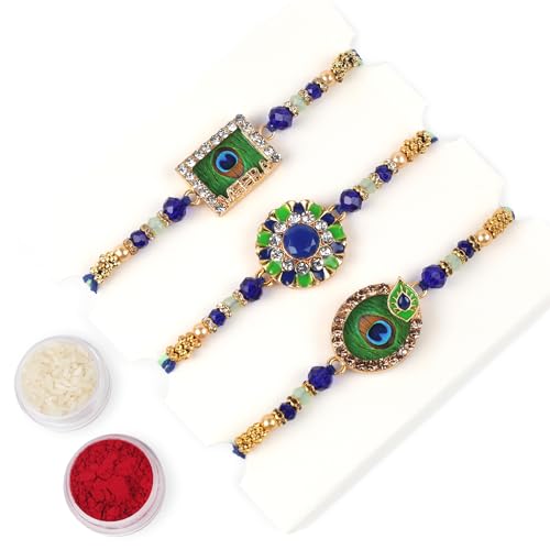 KSJONE Rakhi för broder Rakhi för bror och Bhabhi skicka Rakhi till USA Rakhi till bror med presentset Rakhi Set Rakhi present till syster designer fin rakhi 3 st
