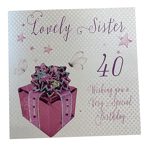 vita bomullskort rosa present, underbar syster 40 Wishing You A Special Handgjord 40:e födelsedagskort, vit, WB190-40