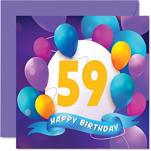 59-års födelsedagskort för män kvinnor – ballongfest – grattis på födelsedagen-kort för 59-årig man kvinna mamma pappa moster farbror farfar mormor bror syster, 145 mm x 145 mm födelsedag gratulationskort present