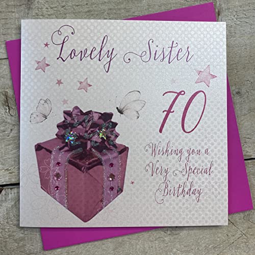 vita bomullskort rosa present, underbar syster 70 Wishing You A Special Handgjord 70:e födelsedagskort, vit, WB190-70