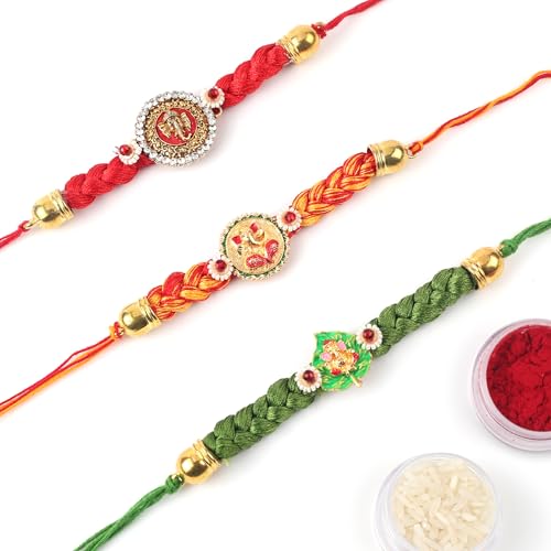 KSJONE Uppsättning om 2 rakhi-trådar i Ganpati-design, rakhi för syster, raksha bandha-present till din bror, rakhi-armband för kärleksfulla syskon, far, bhabhi, bhaiya, Silke