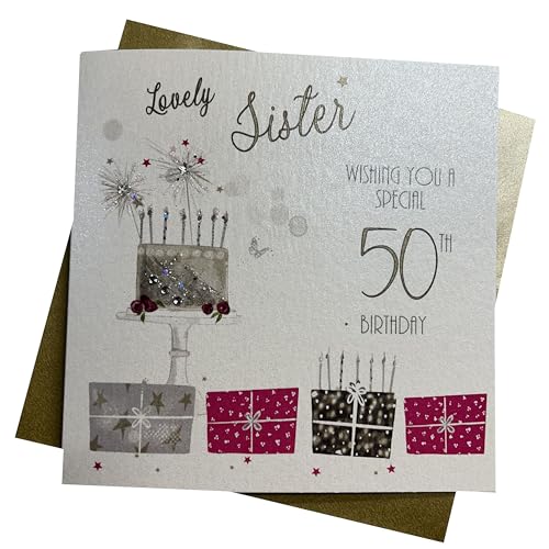 vita bomullskort rosa present, underbar syster 50 Wishing You A Special Handgjord 50-årsdag kort, vit, WB190-50