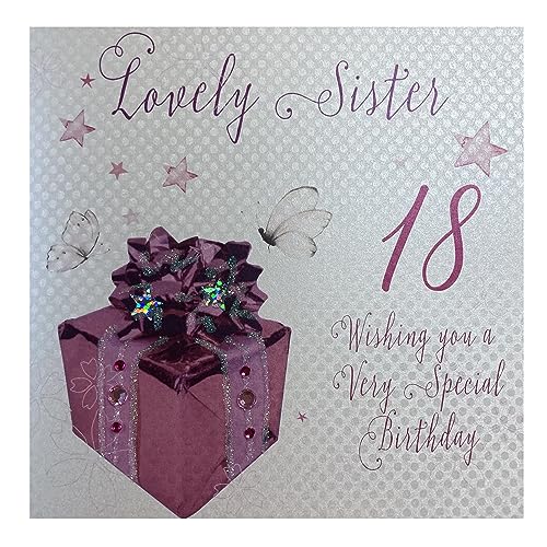 vita bomullskort rosa present, underbar syster 18 Wishing You A Special Handgjord 18:e födelsedagskort, vit, WB190-18
