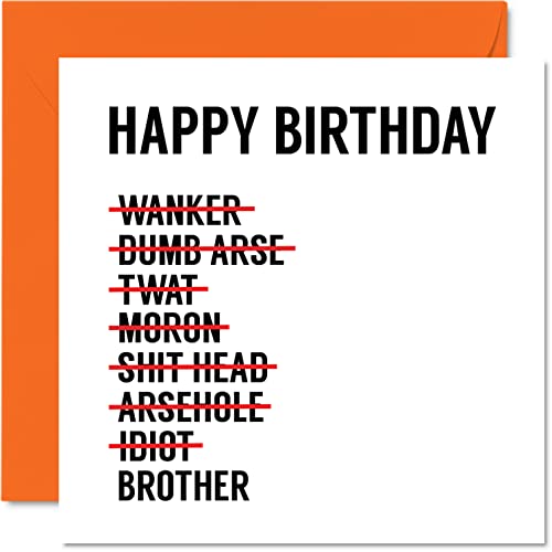 Roliga födelsedagskort till bror – överskridande lista – skämt grattis på födelsedagskort till bror från syster, bror födelsedagspresenter, 145 mm x 145 mm syskon gratulationskort present till bror