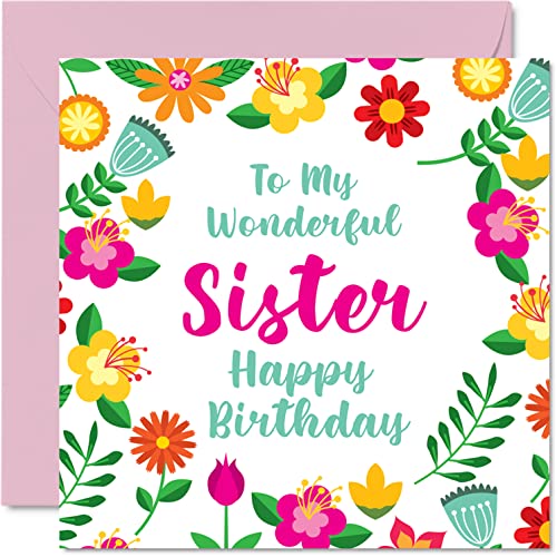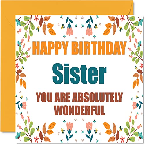 Roliga födelsedagskort till syster – underbar kvinna – gulligt grattis på födelsedagskort till syster från bror, syster speciella födelsedagspresenter, 145 mm x 145 mm syskon blommiga gratulationskort present till syster
