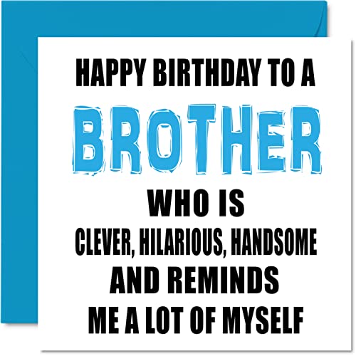 Roliga födelsedagskort till bror – smart, rolig, snygg bror – skämt grattis på födelsedagskort till bror från syster, bror födelsedagspresenter, 145 mm x 145 mm syskon gratulationskort present till bror