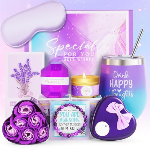 MUJUZE Gåvor till kvinnor, drink glad thoughts-positiv gåva kvinna, vinmugg presentset födelsedag kvinnor, wellness presentkorg för bästa vän, syster, damer present, presenter för kvinnor