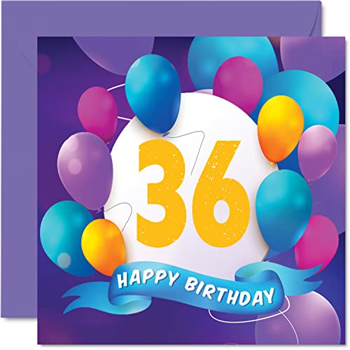36-årskort för män och kvinnor – ballongfest – grattis på födelsedagen-kort för 36 år gammal man kvinna bror syster mamma pappa moster farbror bästa vän kusin, 145 mm x 145 mm födelsedag gratulationskort present