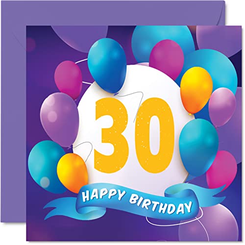 30-årskort för män och kvinnor – ballongfest – grattis på födelsedagen-kort för 30 år gammal man kvinna bror syster son dotter moster farbror vän kusin, 145 mm x 145 mm födelsedag gratulationskort present