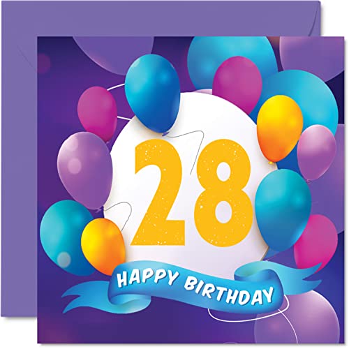 28-års födelsedagskort för män och kvinnor – ballongfest – grattis på födelsedagen-kort för 28-årig man kvinna bror syster son dotter moster farbror vän kusin, 145 mm x 145 mm födelsedag gratulationskort present