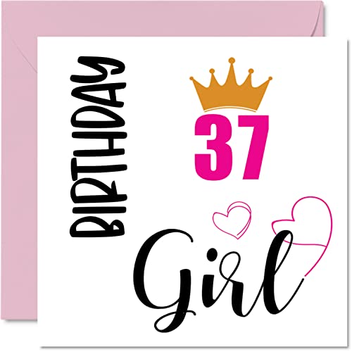 37:e födelsedagskort för kvinnor – födelsedagsflicka – grattis på födelsedagskort för 37 år gammal kvinna dotter syster moster kusin vän systerdotter, 145 mm x 145 mm trettiosju trettiosjude födelsedag gratulationskort present