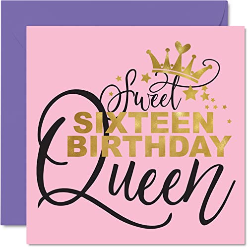 Födelsedagskort till 16-årsdagen Födelsedag för flickor och dig – Sweet 16 Queen – Happy Sixteenth 16 kort flicka för dotter farsdotter Niece syster vän kusin 145 mm kvinnliga gratulationskort present