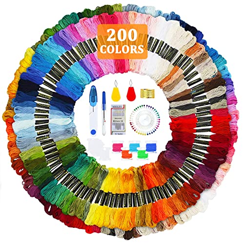 JOTOL Broderi kit, 200 färger broderitråd + verktyg, för broderi, korsstygn, brasilianska armband, sytråd, verktyg tillbehör