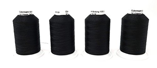 Gütermann Miniking Set sytråd overlock-garn täcklockgarn, 4 koner vardera 1 000 m (0 000 svart)