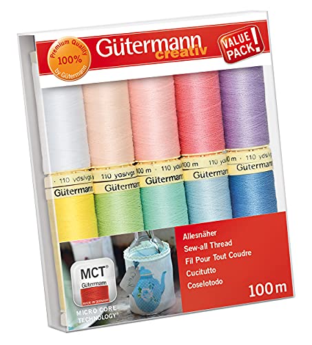Gütermann creativ Sytråd set med 10 spolar allsidiga 100 m i pastellfärger, flerfärgade