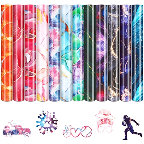 Tintnut Marmor värmeöverföringsvinyl – 12 ark 25 x 30 cm bunt akvarell guldmönster järn på vinyl opal ombre tryck HTV överföring gör-det-själv t-shirt present canvasväska