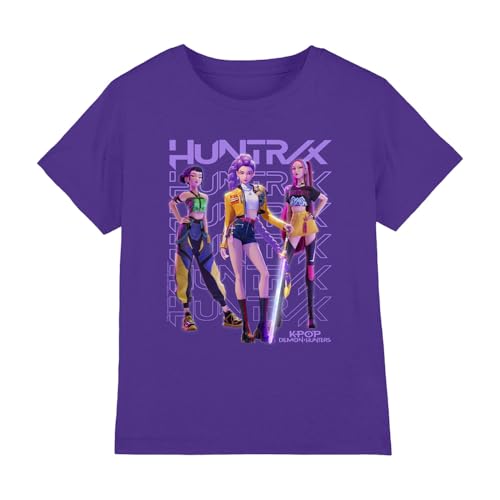 K-Pop Demon Hunters unisex barn Huntrix Huntr/X Golden Trio Pose Kids T-shirt, lila, 7-8 år