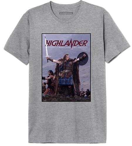 cotton division Highlander "Highlander Victory Pose" MEHILDRTS005 T-shirt för herr, grå melange, storlek XS, Melange grå, XS