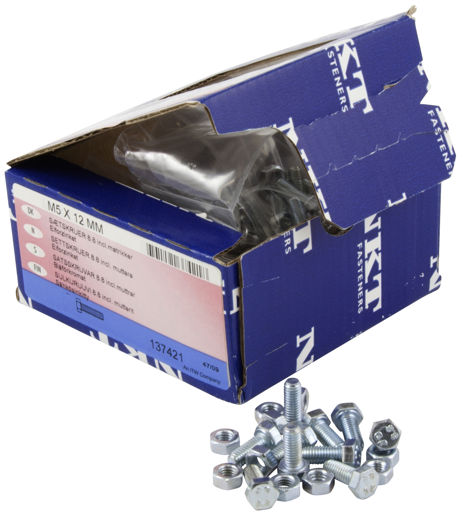 NKT sætskrue M5Ã12 m/møtrik t/vindgitterbånd, 10 st. pose