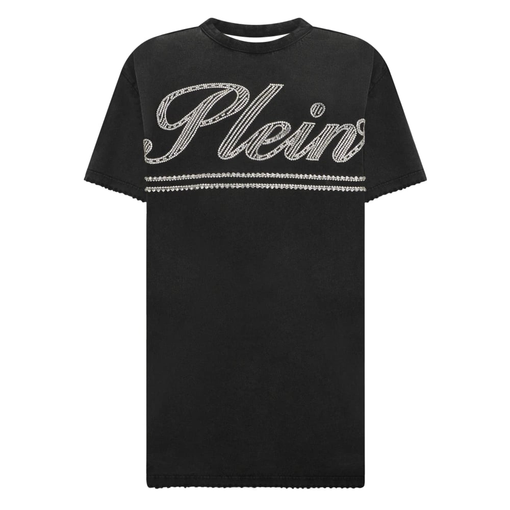 Philipp Plein, Klänningar , Dam, M, Bomull, Open Back T-Shirt Dress Strass Signature