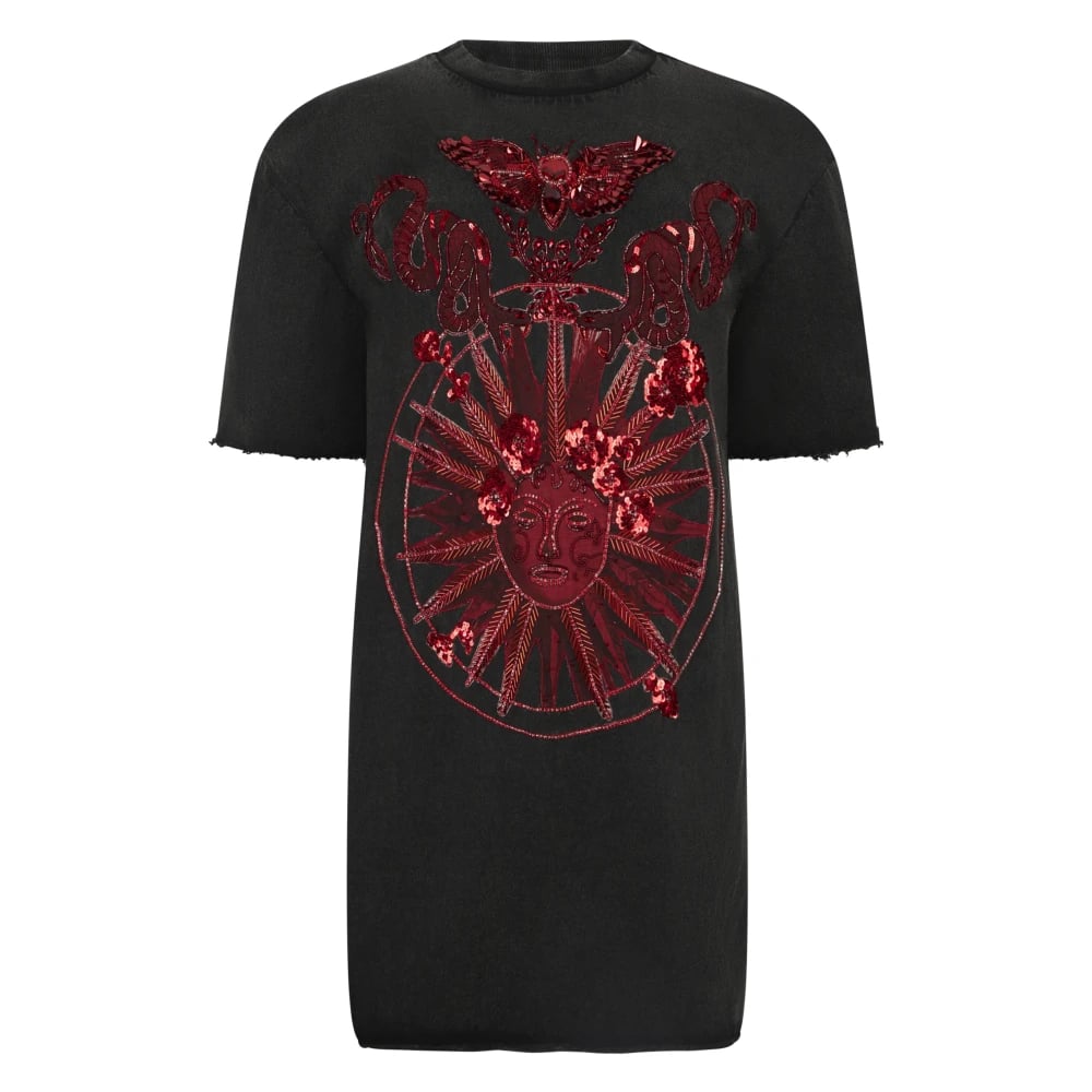 Philipp Plein, Klänningar , Dam, M, Bomull, Open Back T-Shirt Dress Butterfly Tattoo
