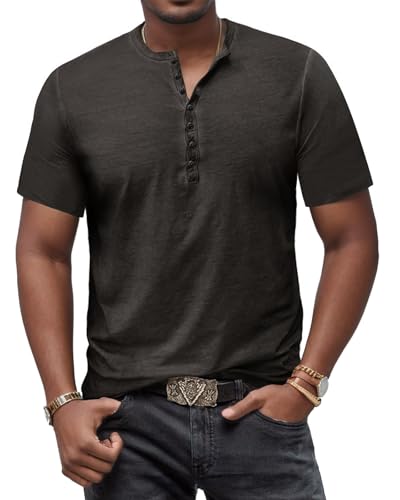 Henley t-shirts för män – långärmade toppar för män bomull vardaglig farfar vintage t-shirt M-3XL, Mörkgrå-kort, XL