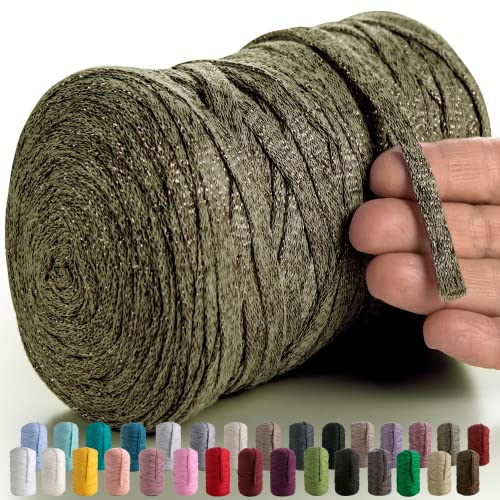 NOTIONSLAND 400 g T-shirt-garn, stickgarn, tyg, virkgarn för väska, korg, filt, heminredning – mörk khaki