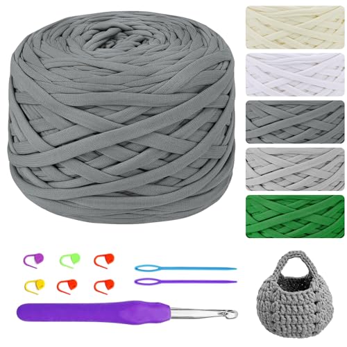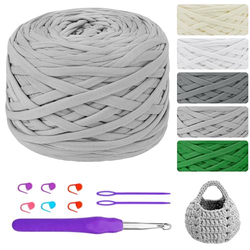 400g/100m T-shirt Garn för Virkning och Stickning - Väskor, Korgar, Mattor, Vägghängning och Gör-Det-Själv-Hantverk - Ljusgrå