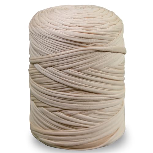 Notionsland T-shirt-garn, 400 g, stickgarn, tyg, virkgarn för väskor, korgar, filtar, heminredning – ljus grädde, enfärgat garn